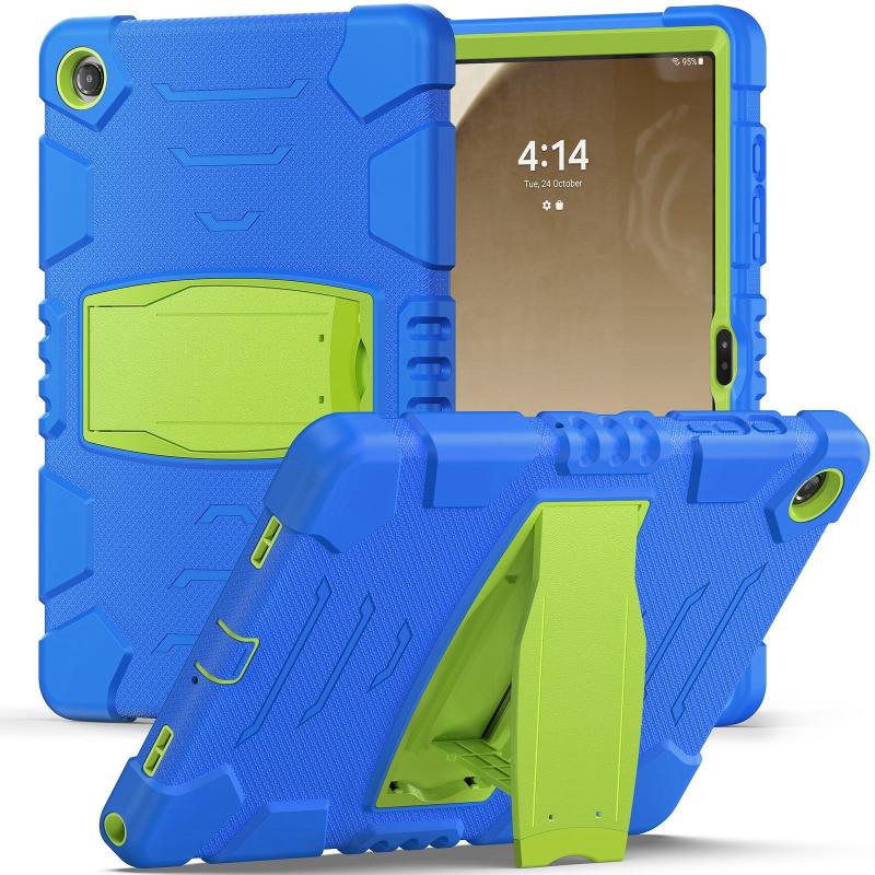 For Samsung Galaxy Tab A9+ / X210 PC Hybrid Silicone Tablet Case with Holder(Blue Lime)