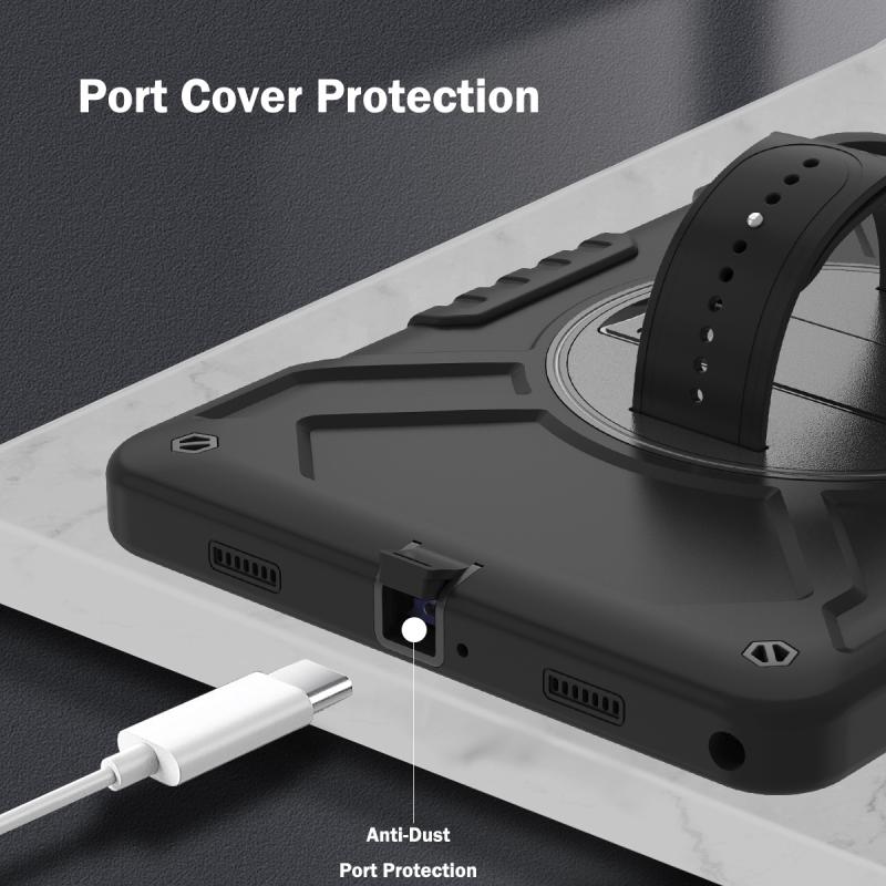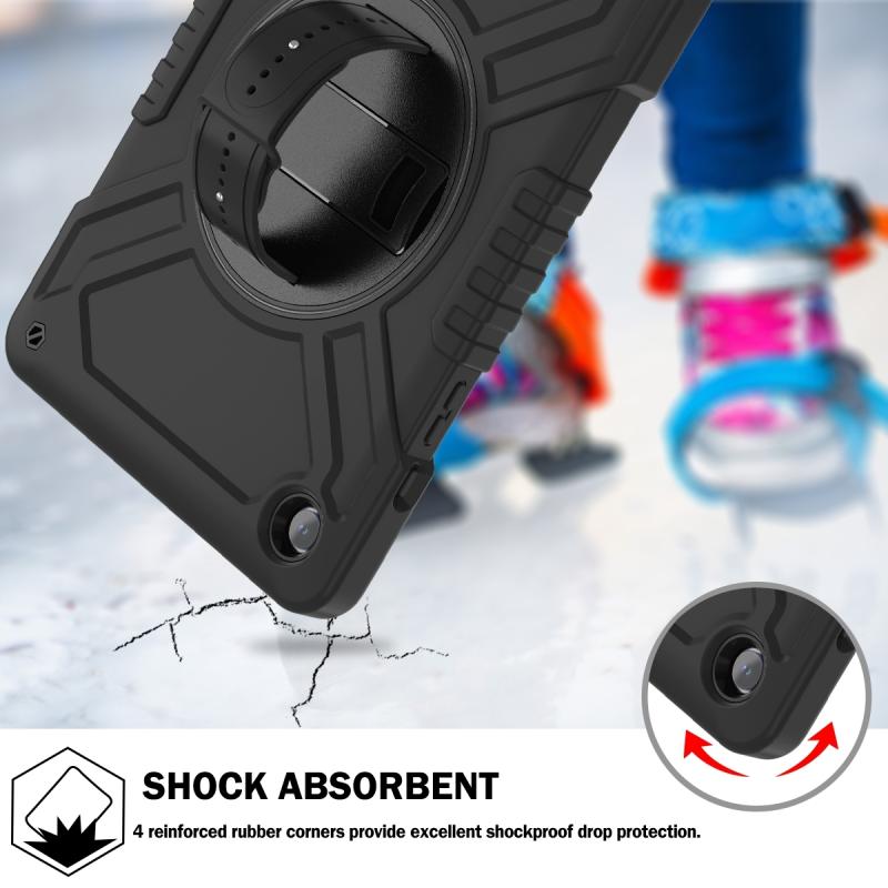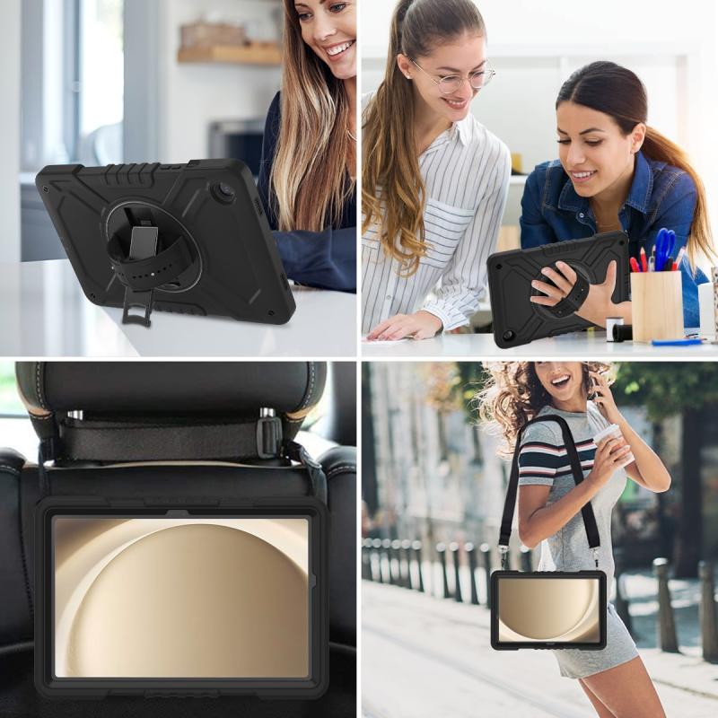 For Samsung Galaxy Tab A9+ X210 X Rotation PC Hybrid Silicone Tablet Case with Strap(Full Black)
