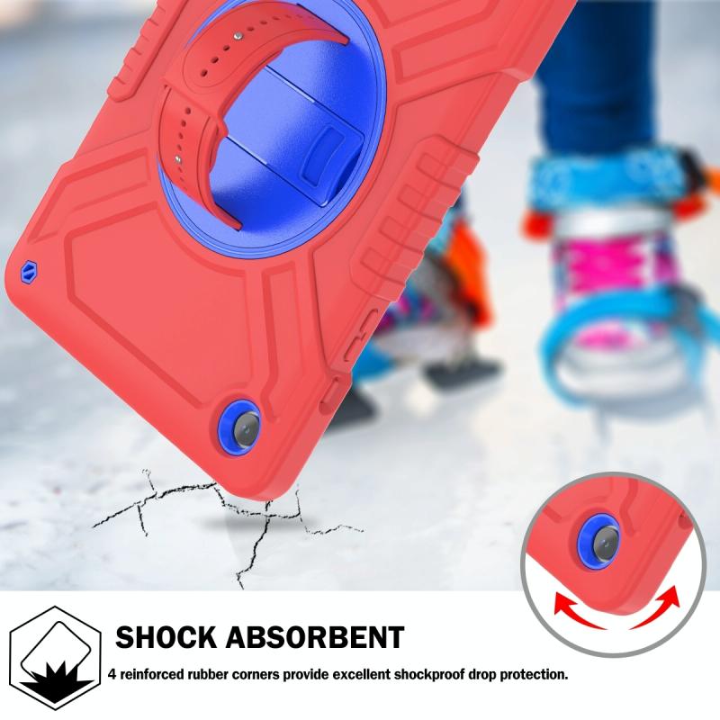 3. Adjustable Shoulder Strap: Adjustable shoulder grip can be slanted and release your hands completely. This function is perfect for traveling, restaurant ordering, home product introduction, engineer outdoor operation, teacher, etc. Also, the strap allows you to hang up your tablet behind car seat for entertainment for kids.