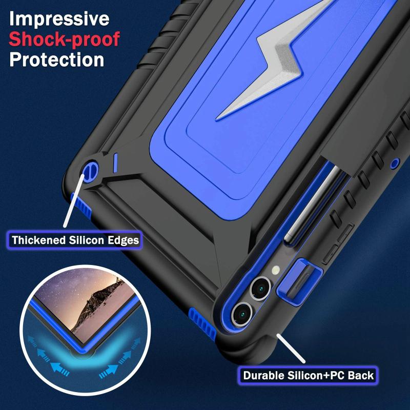 For Samsung Galaxy Tab S10+ / S9+ Armor Bolt Shape Holder Silicone Hybrid PC Tablet Case(Black Blue)
