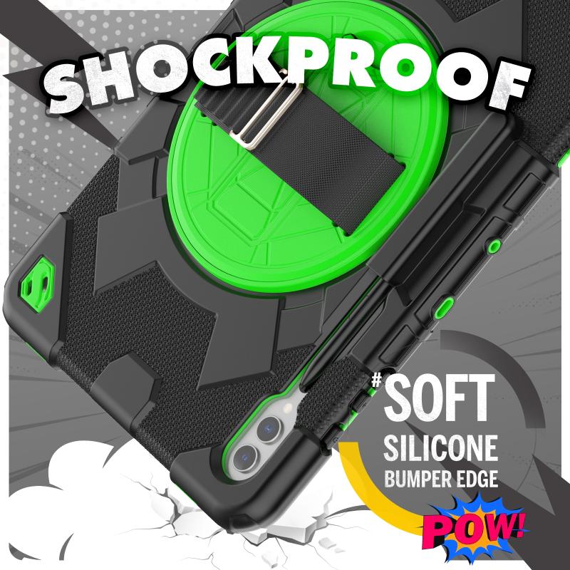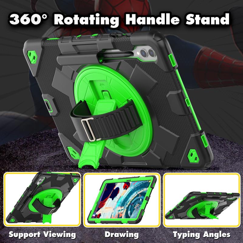 For Samsung Galaxy Tab S10+ / S9+ / S9 FE+ Spider Hand Grip Turntable Stand Tablet Case(Black Green)