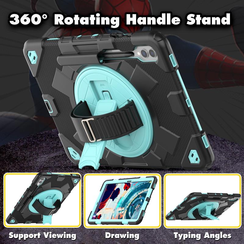 For Samsung Galaxy Tab S10+ / S9+ / S9 FE+ Spider Hand Grip Turntable Stand Tablet Case(Black Light Blue)