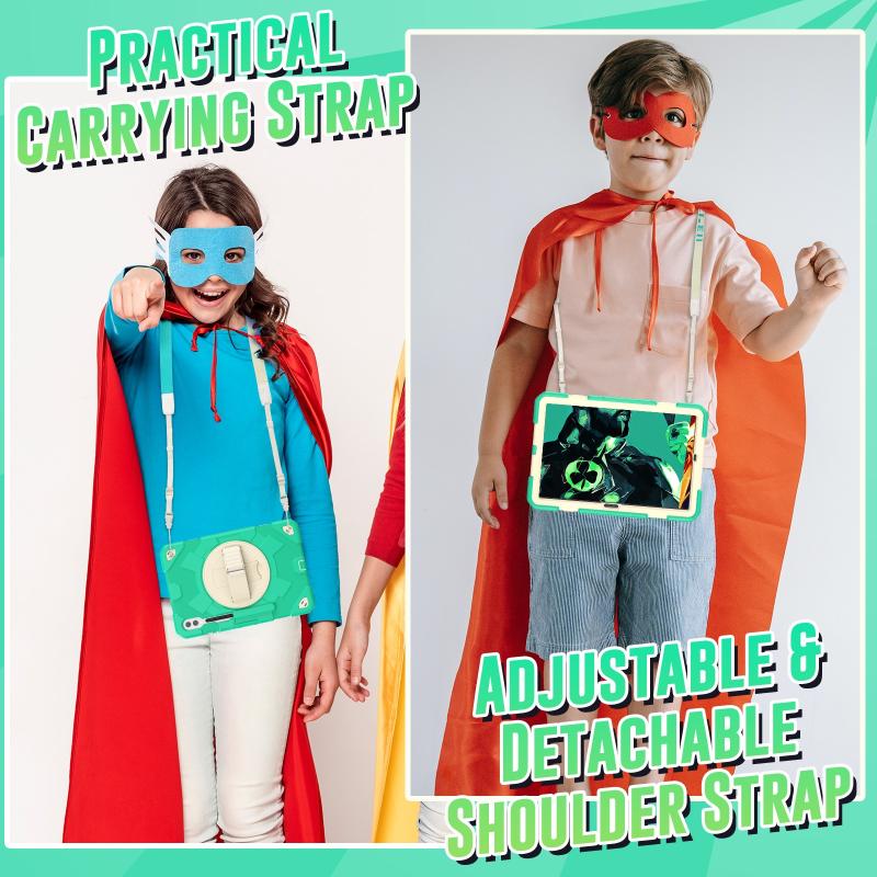 6. Detachable Shoulder Strap: The adjustable hand strap provides easy and comfortable grip, a must-have feature when you are presenting your tablet to others. The detachable and adjustable shoulder strap can help you carry your tablet more safely while hiking, traveling and other outdoor activities. This can also be used to secure your tablet to the car seat.