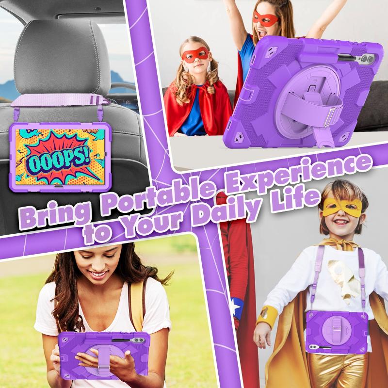 For Samsung Galaxy Tab S10+ / S9+ / S9 FE+ Spider Hand Grip Turntable Stand Tablet Case(Purple)
