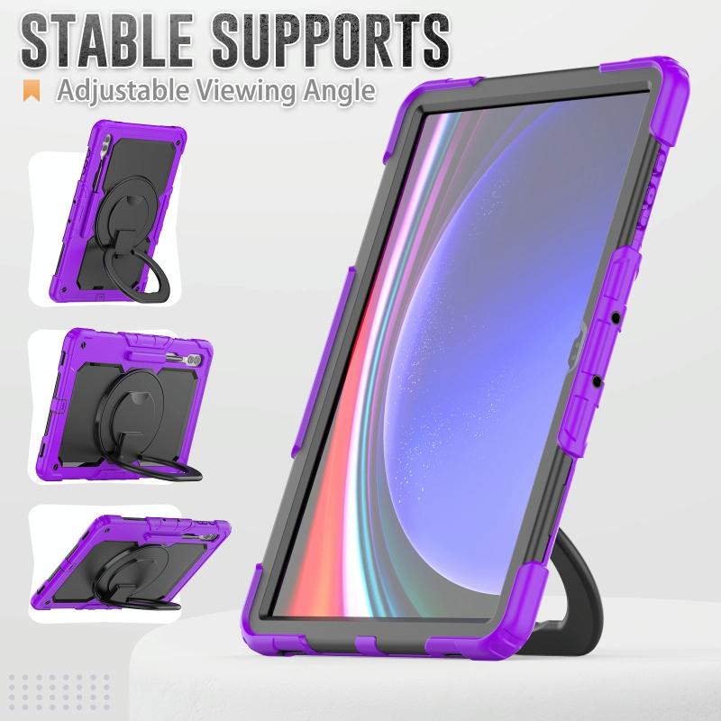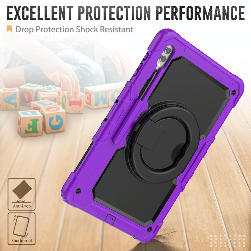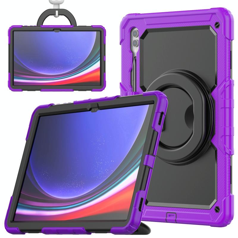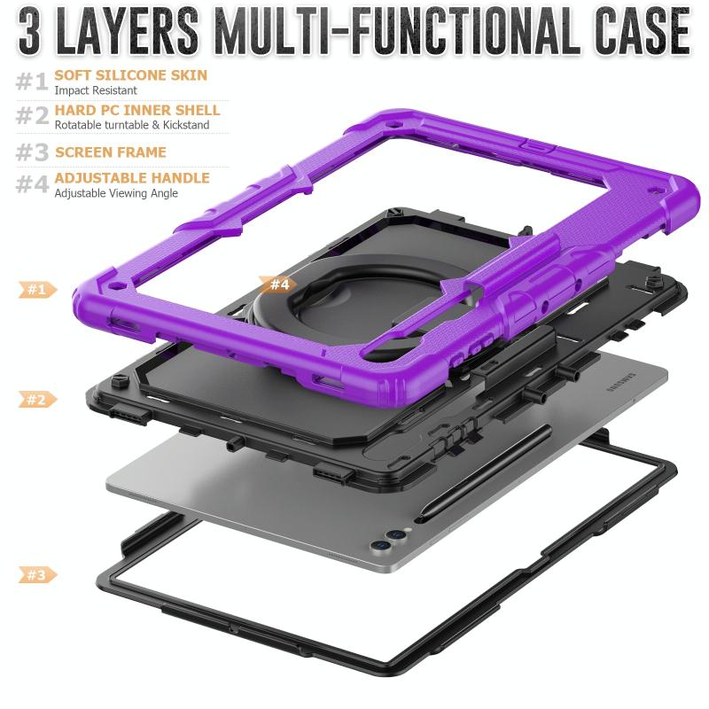 For Samsung Galaxy Tab S10 Ultra D Type Silicone Hybrid PC Tablet Case with Handle Holder(Purple)