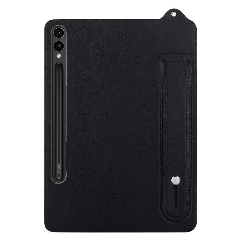 For Samsung Galaxy Tab S10 Ultra / S9 Ultra TPU Leather Back Tablet Case with Wristband(Black)
