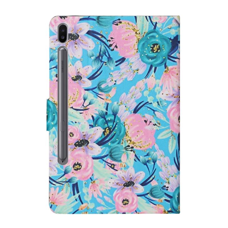 For Samsung Galaxy Tab S6 Flower Pattern Horizontal Flip Leather Case with Card Slots & Holder(Pink Flower)