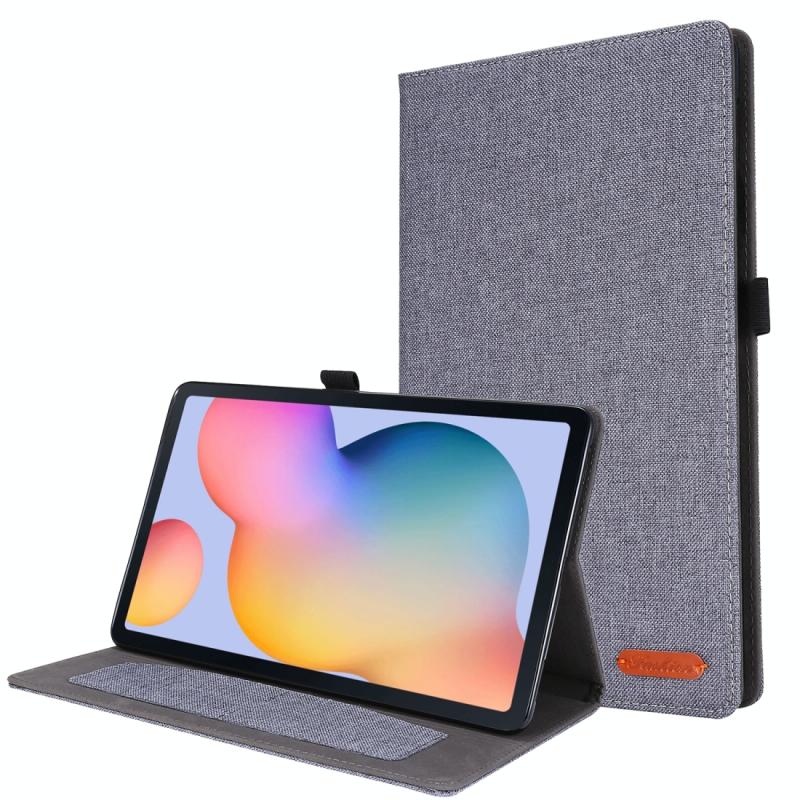 For Samsung Galaxy Tab S6 Lite Horizontal Flip TPU + Fabric PU Leather Protective Case with Name Card Clip(Grey)