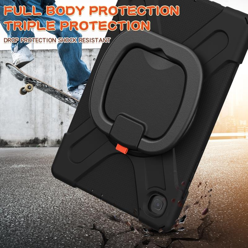 For Samsung Galaxy Tab S6 Lite P610 Silicone + PC Protective Case with Holder & Shoulder Strap(Black)