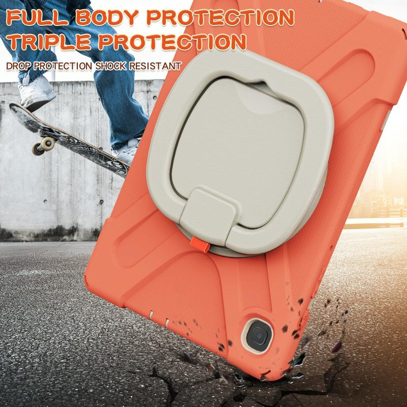 For Samsung Galaxy Tab S6 Lite P610 Silicone + PC Protective Case with Holder & Shoulder Strap(Coral Orange)