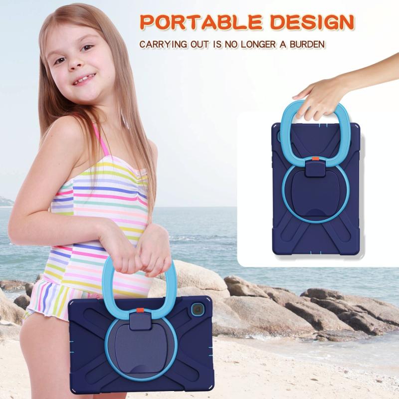 For Samsung Galaxy Tab S6 Lite P610 Silicone + PC Protective Case with Holder & Shoulder Strap(Navy Blue)