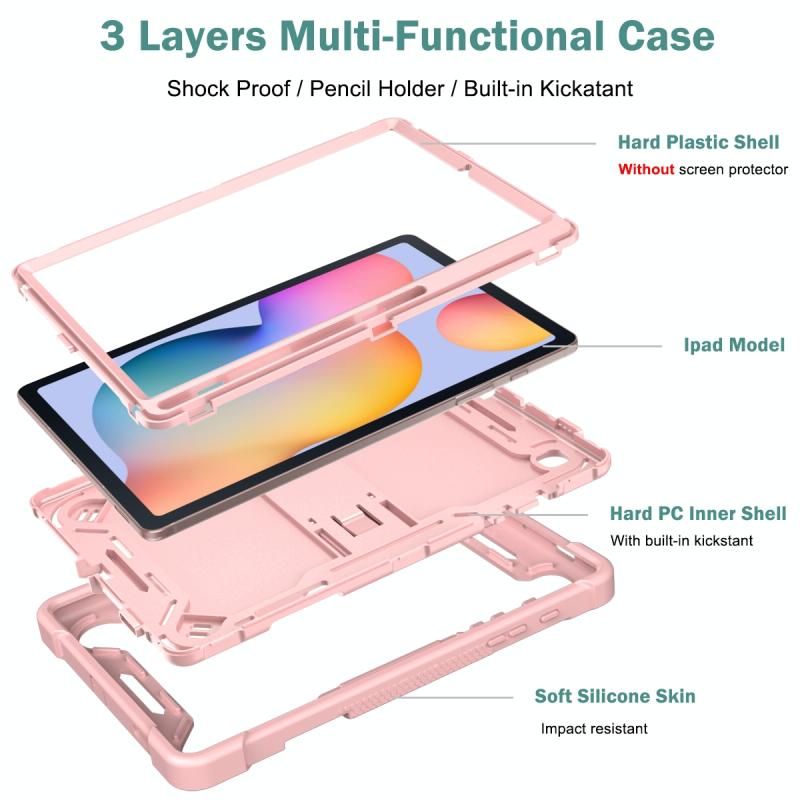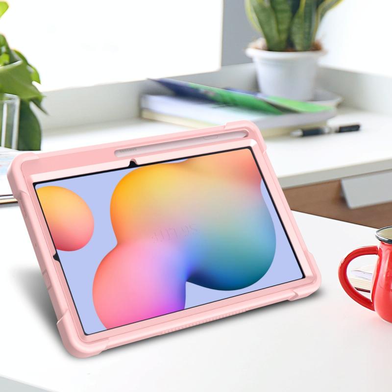 For Samsung Galaxy Tab S6 Lite Silicone + PC Shockproof Protective Case with Holder(Rose Gold)