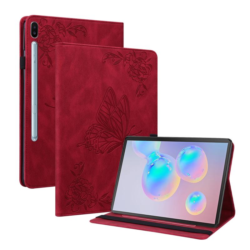 For Samsung Galaxy Tab S6 SM-T860/T865 Butterfly Flower Embossed Leather Tablet Case, without Pen(Red)
