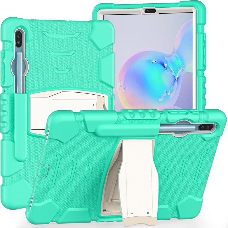 For Samsung Galaxy Tab S6 T860 3-Layer Protection Screen Frame + PC + Silicone Shockproof Combination Case with Holder(Mint Green)