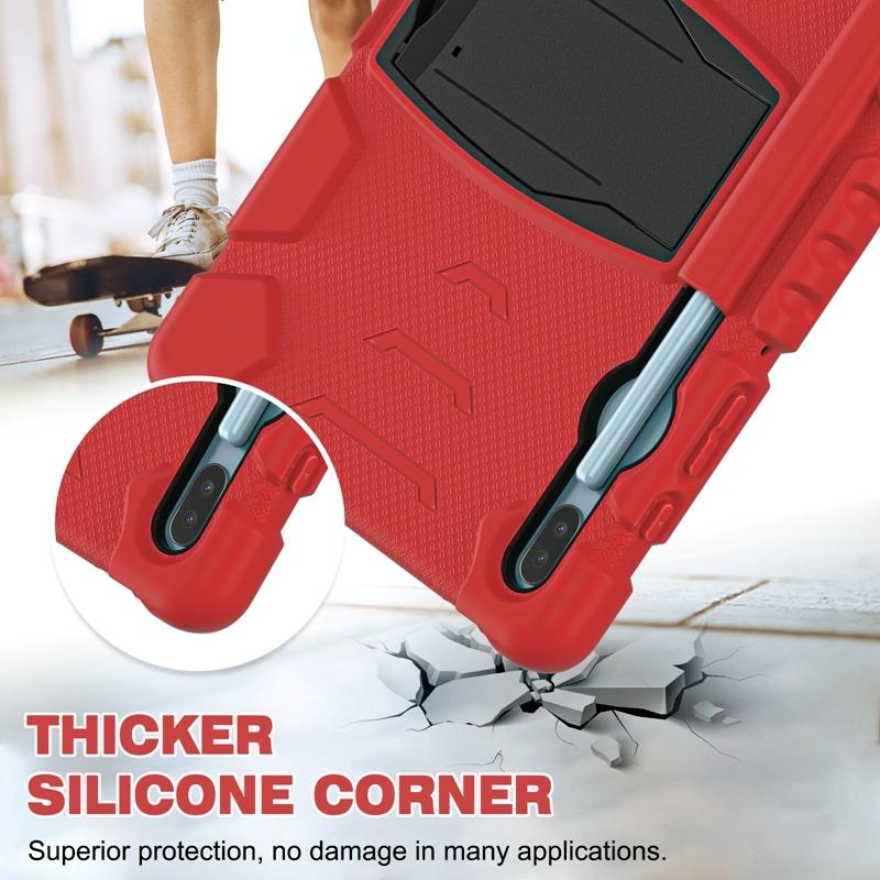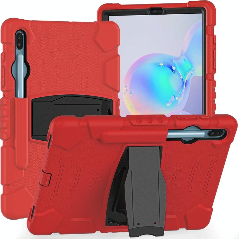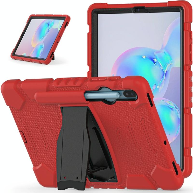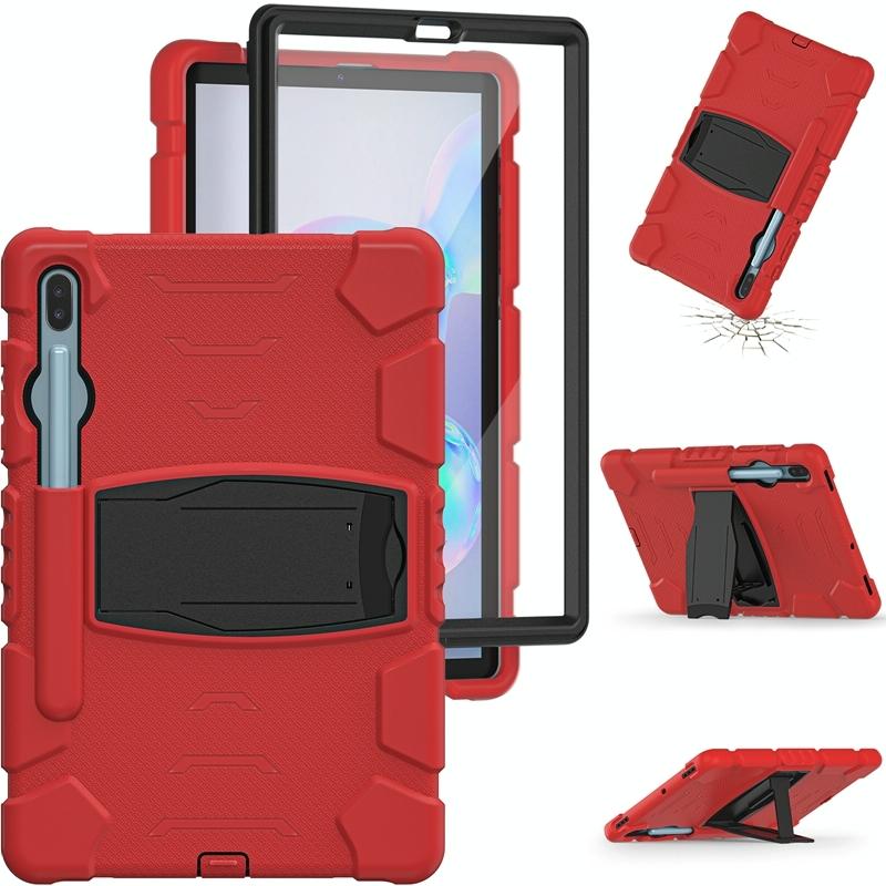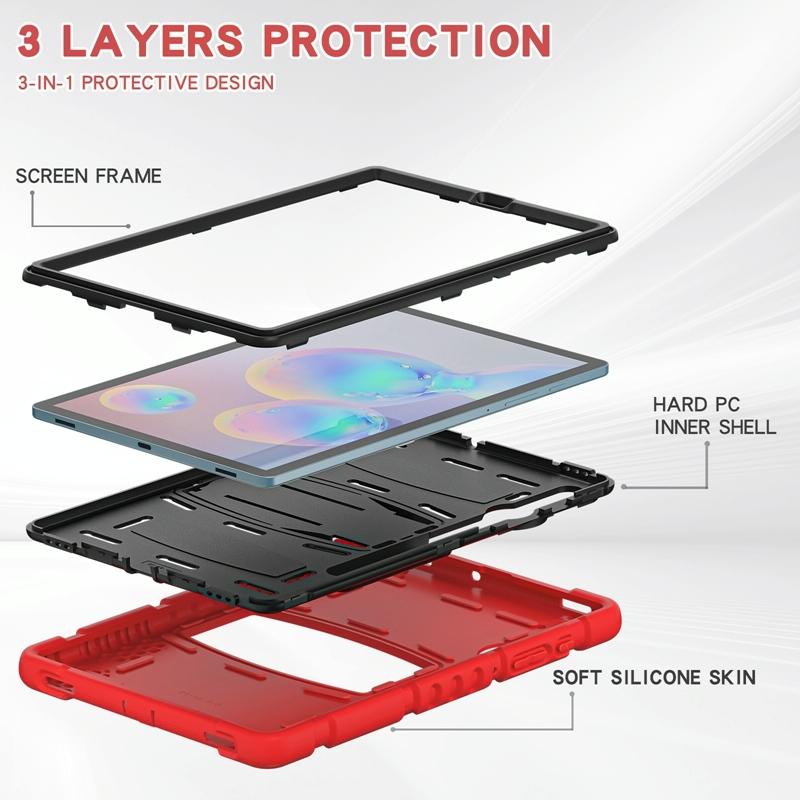 For Samsung Galaxy Tab S6 T860 3-Layer Protection Screen Frame + PC + Silicone Shockproof Combination Case with Holder(Red+Black)