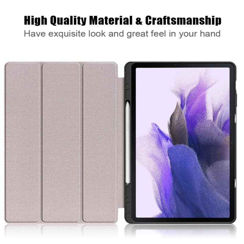 For Samsung Galaxy Tab S7 FE 12.4 Solid Color TPU Horizontal Flip Tablet Leather Case with 3-Fold Holder & Sleep / Wake-up Function(Black)