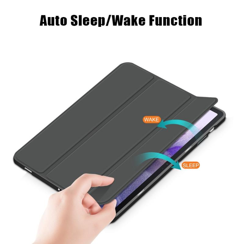 For Samsung Galaxy Tab S7 FE 12.4 Solid Color TPU Horizontal Flip Tablet Leather Case with 3-Fold Holder & Sleep / Wake-up Function(Grey)