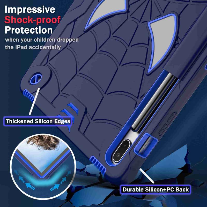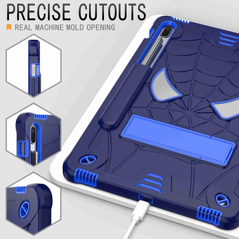 For Samsung Galaxy Tab S7 FE / S7+ / S8+ Spider Texture Silicone Hybrid PC Tablet Case with Shoulder Strap(Navy Blue + Blue)