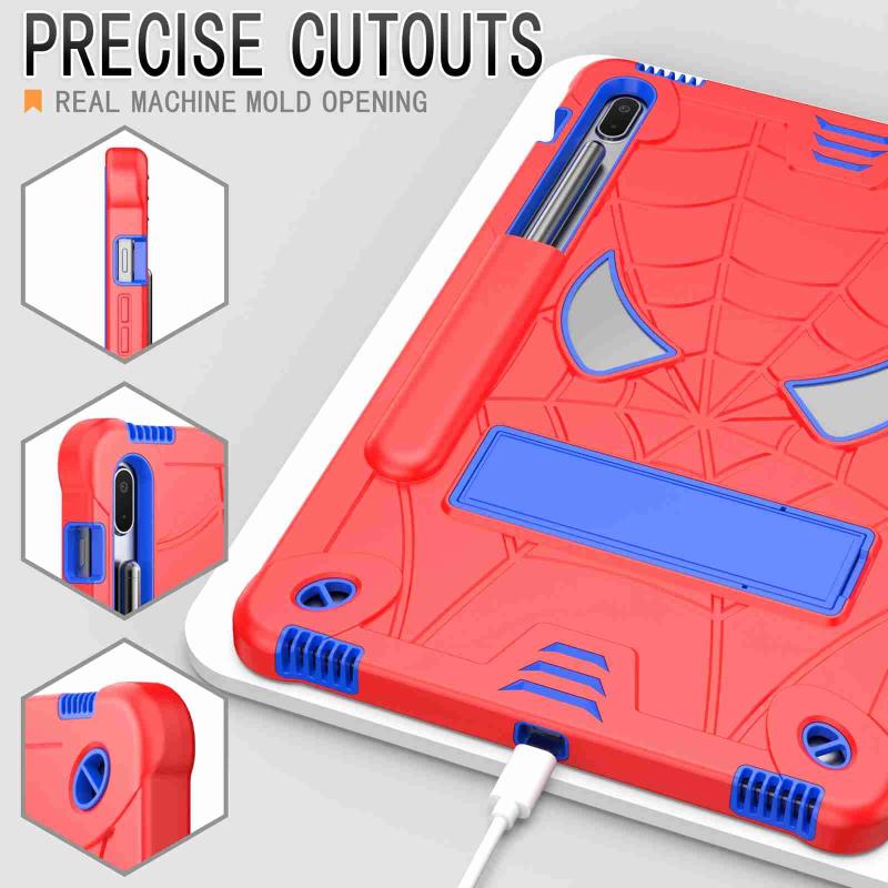 For Samsung Galaxy Tab S7 FE / S7+ / S8+ Spider Texture Silicone Hybrid PC Tablet Case with Shoulder Strap(Red + Blue)
