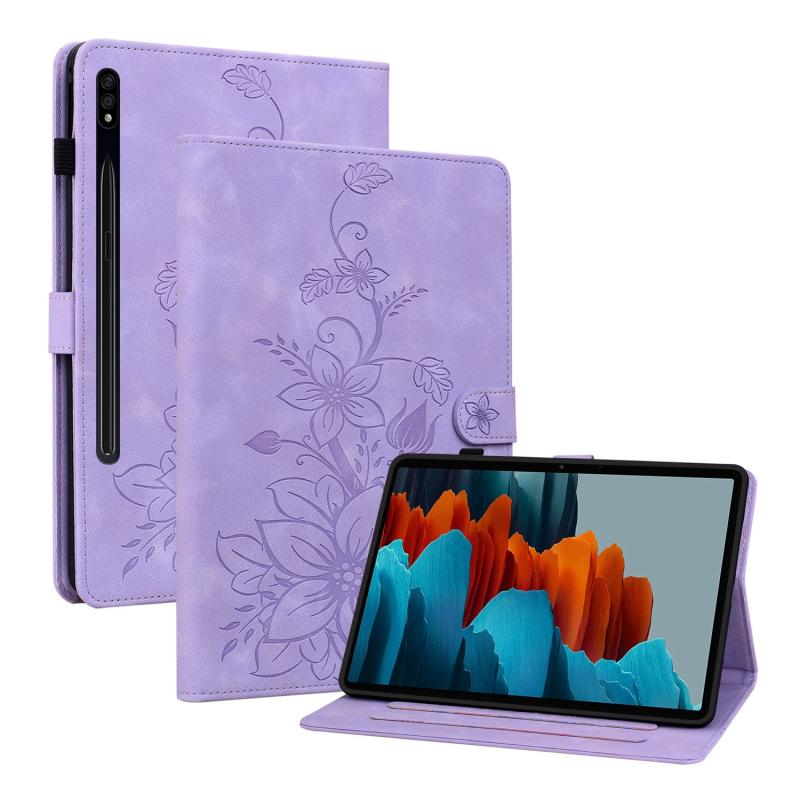For Samsung Galaxy Tab S7 FE/S8+/S7+ Lily Embossed Leather Tablet Case(Purple)