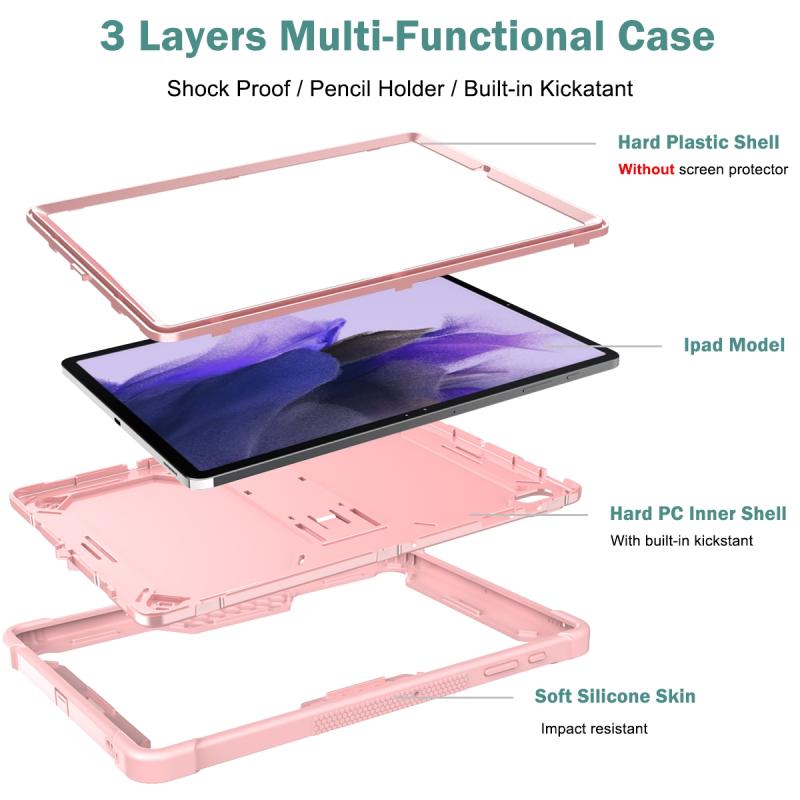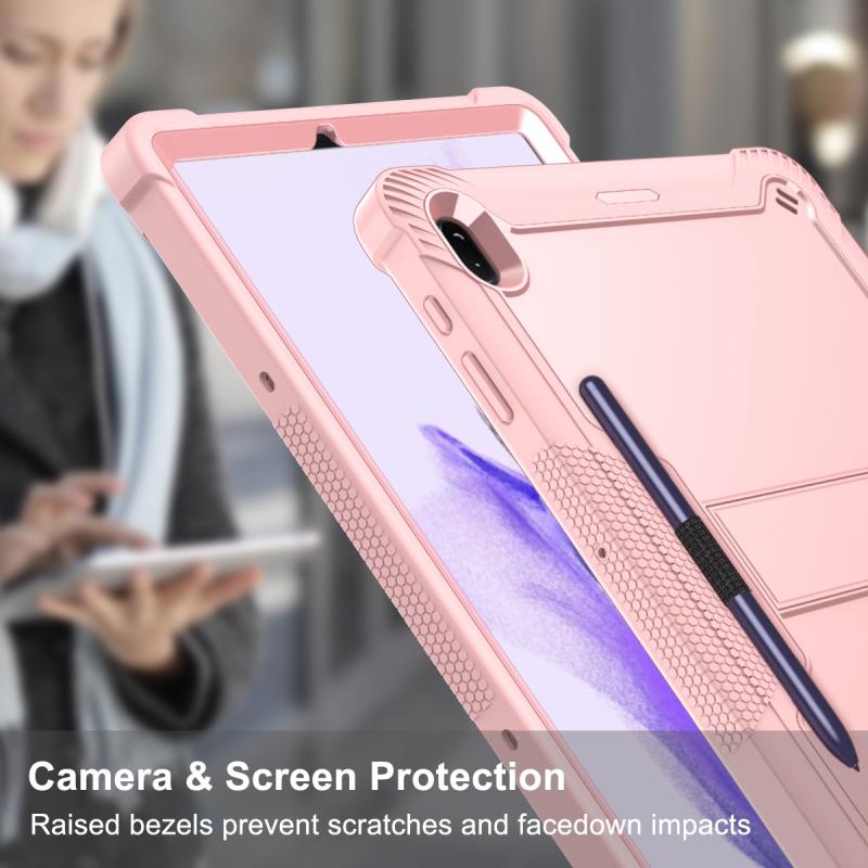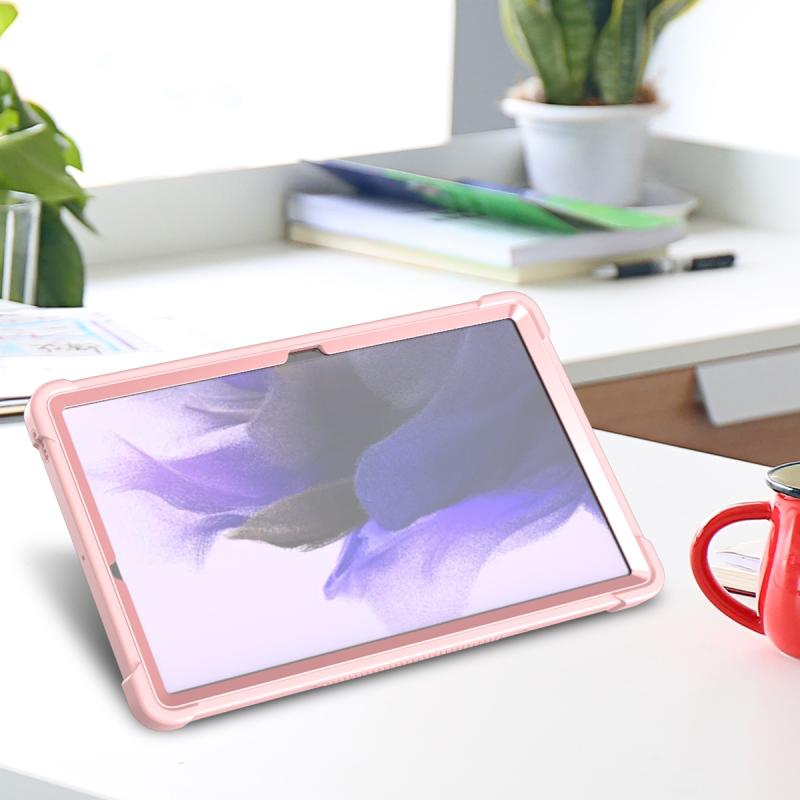 For Samsung Galaxy Tab S7 FE Silicone + PC Shockproof Protective Case with Holder(Rose Gold)