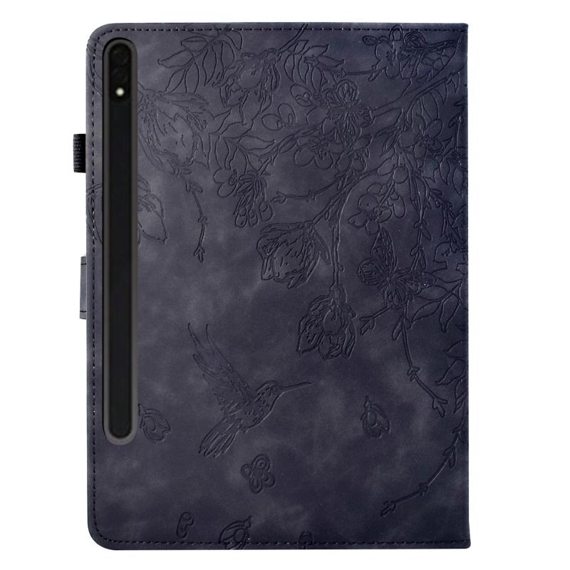 For Samsung Galaxy Tab S7 / S8 Flowers and Bird Embossed Smart Leather Tablet Case(Black)