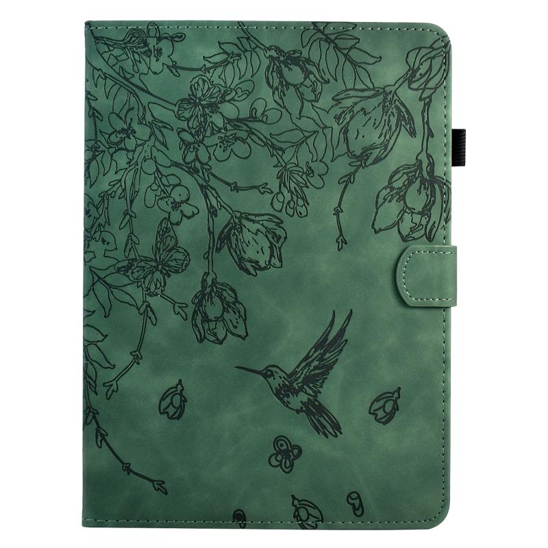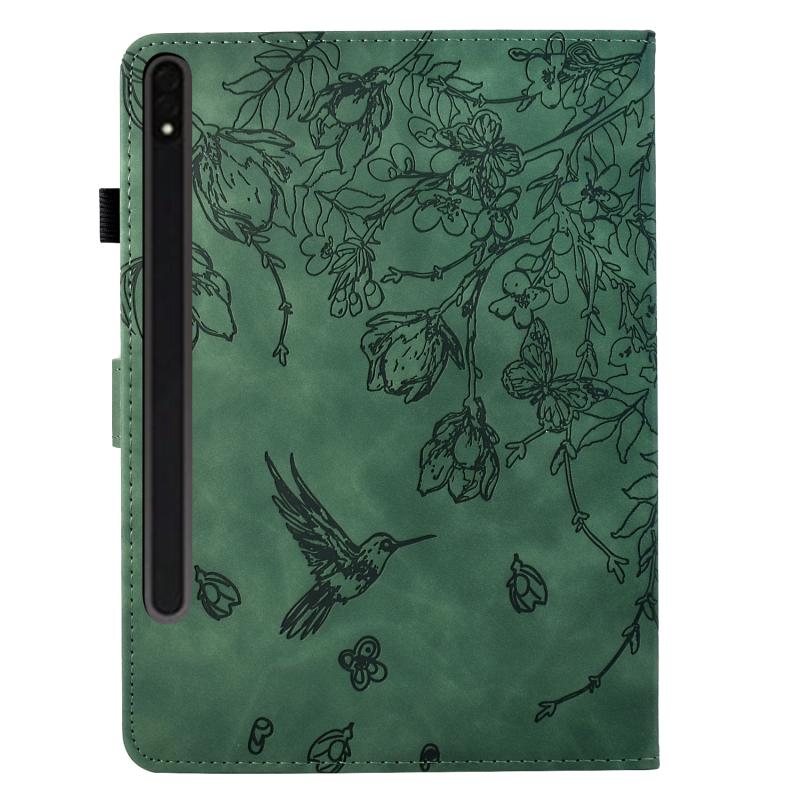 For Samsung Galaxy Tab S7 / S8 Flowers and Bird Embossed Smart Leather Tablet Case(Green)