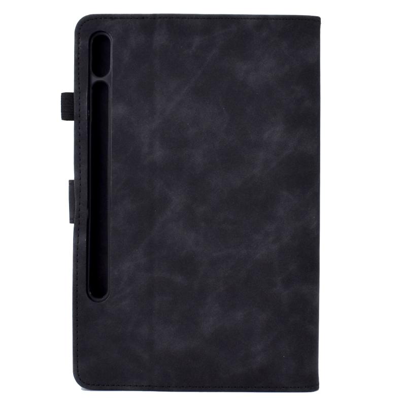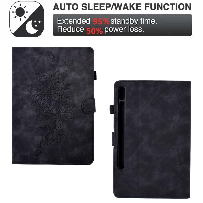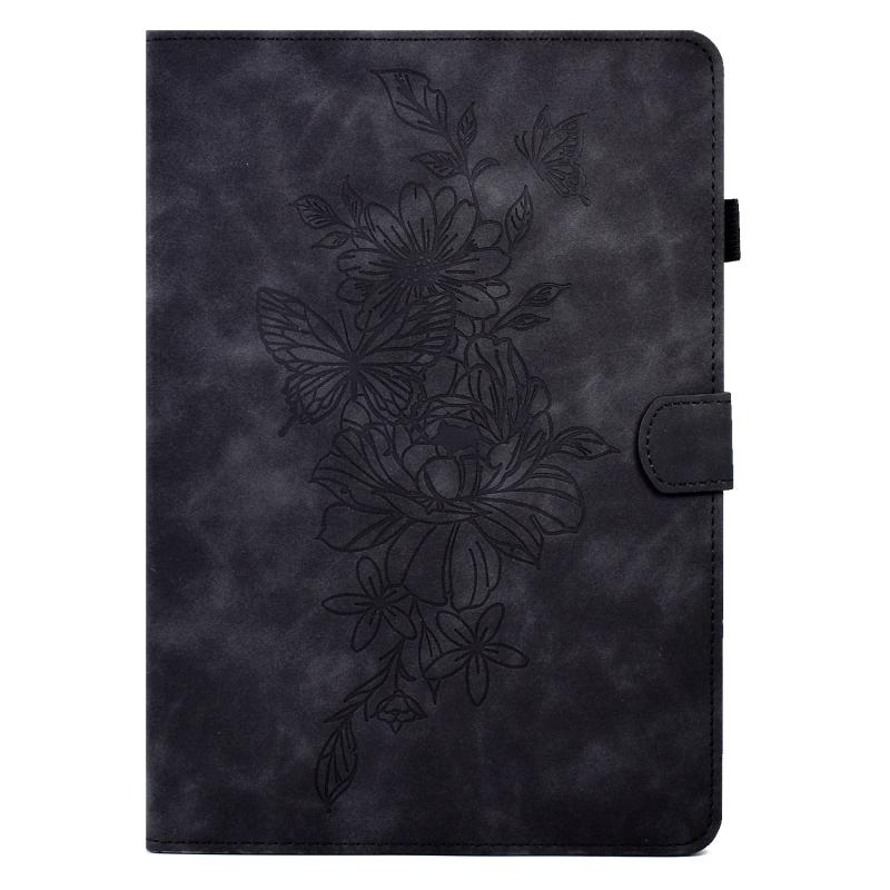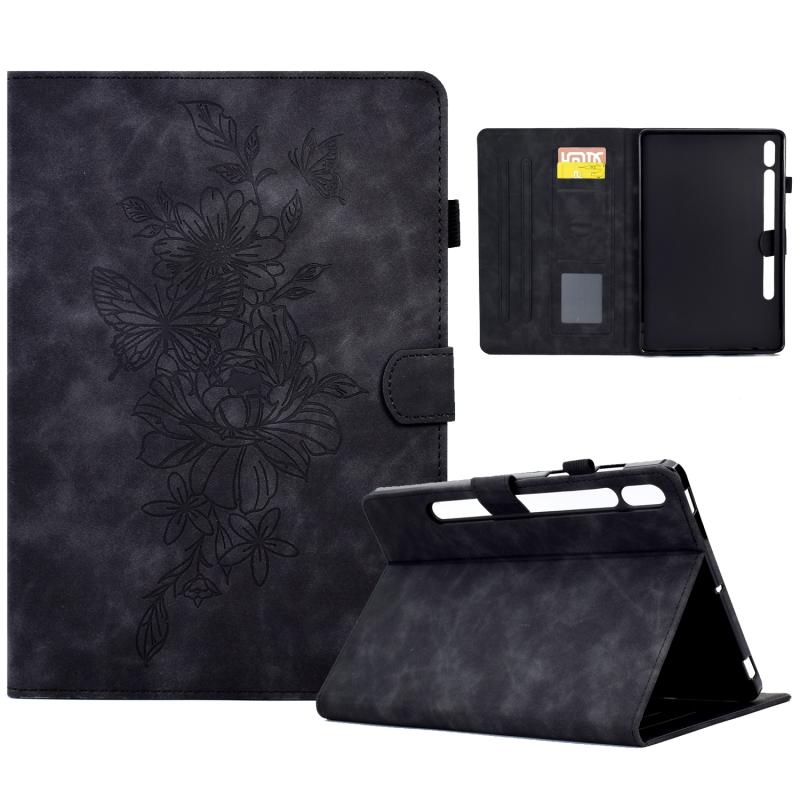 For Samsung Galaxy Tab S7 / S8 Peony Butterfly Embossed Leather Smart Tablet Case(Black)