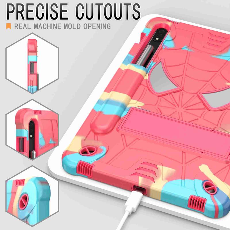 For Samsung Galaxy Tab S7 / S8 Spider Texture Silicone Hybrid PC Tablet Case with Shoulder Strap(Camouflage + Rose Red)
