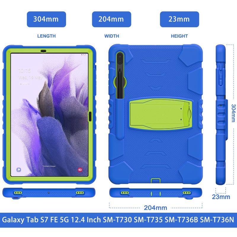 For Samsung Galaxy Tab S7+/ Tab S7 FE / Tab S8+ 3-Layer Protection Screen Frame + PC + Silicone Combination Case with Holder(Blue+Lime)