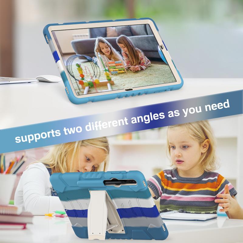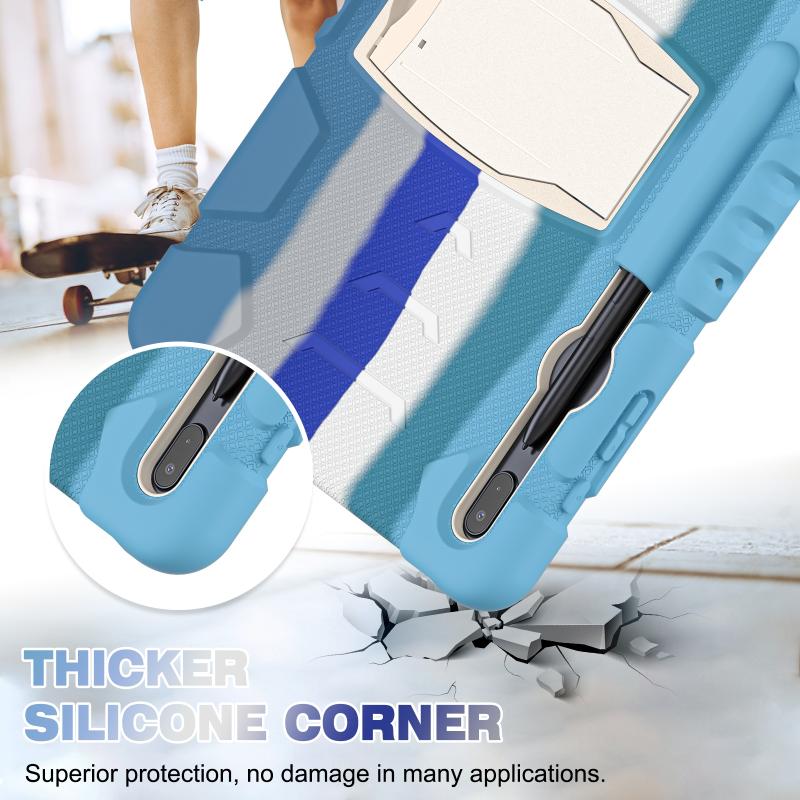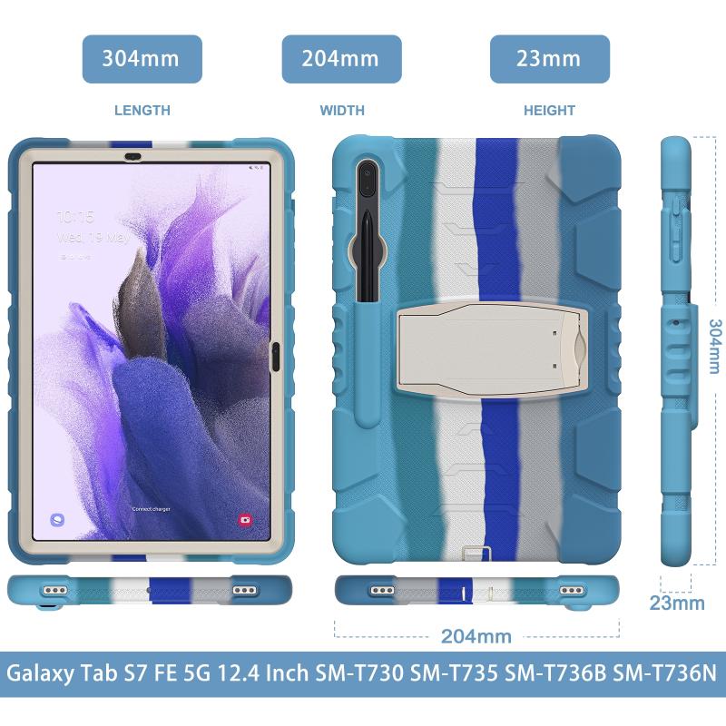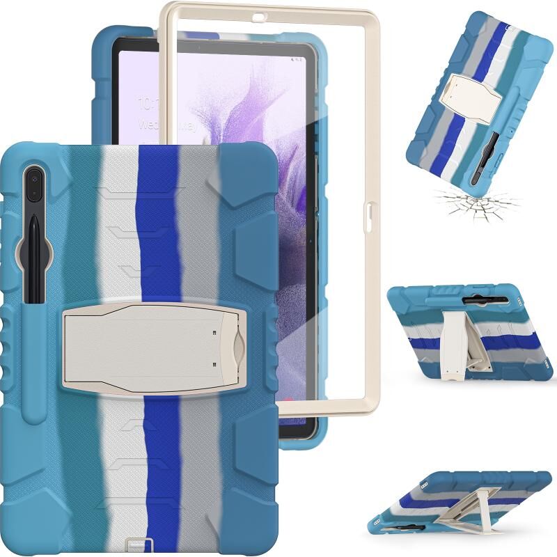 For Samsung Galaxy Tab S7+/ Tab S7 FE / Tab S8+ 3-Layer Protection Screen Frame + PC + Silicone Combination Case with Holder(Colorful Blue)