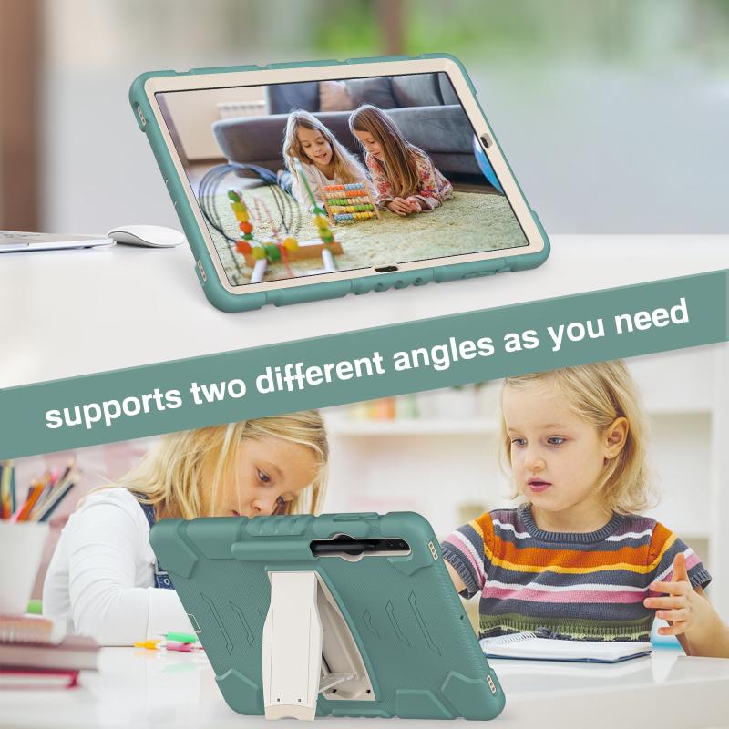For Samsung Galaxy Tab S7+/ Tab S7 FE / Tab S8+ 3-Layer Protection Screen Frame + PC + Silicone Combination Case with Holder(Emerald Green)