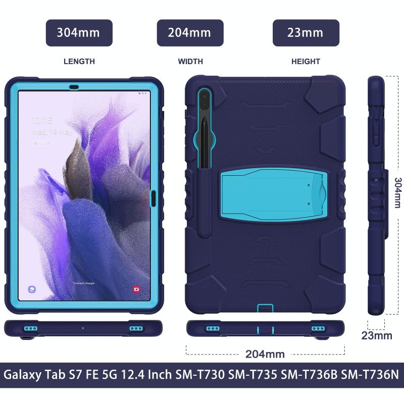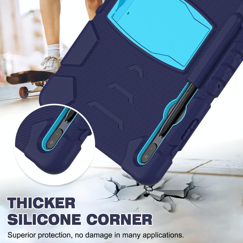 For Samsung Galaxy Tab S7+/ Tab S7 FE / Tab S8+ 3-Layer Protection Screen Frame + PC + Silicone Combination Case with Holder(NavyBlue+Blue)