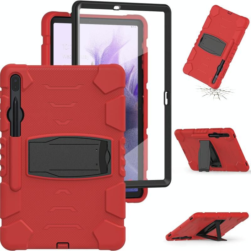 For Samsung Galaxy Tab S7+/ Tab S7 FE / Tab S8+ 3-Layer Protection Screen Frame + PC + Silicone Combination Case with Holder(Red+Black)