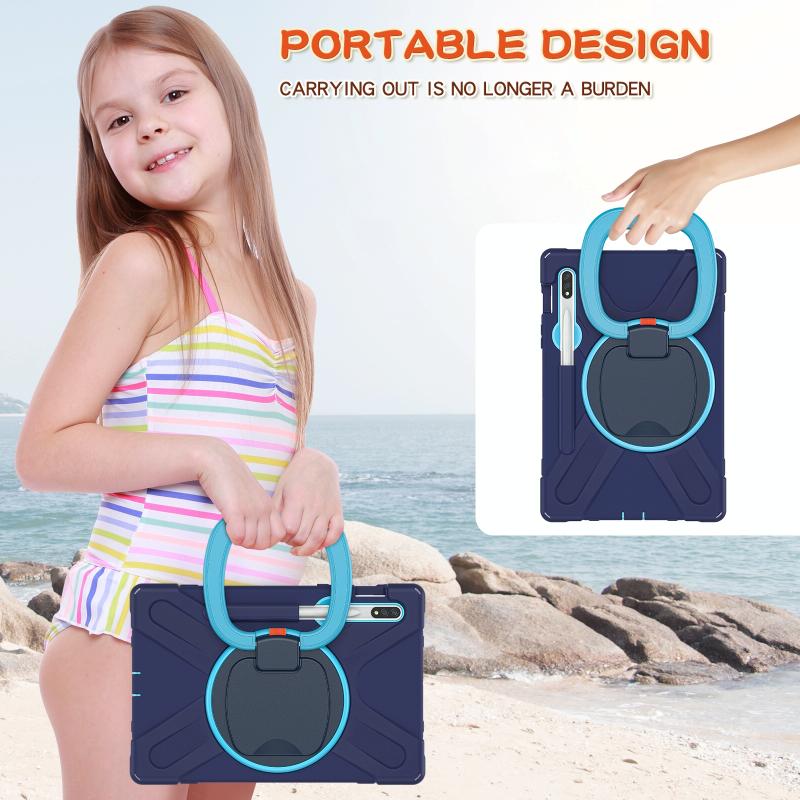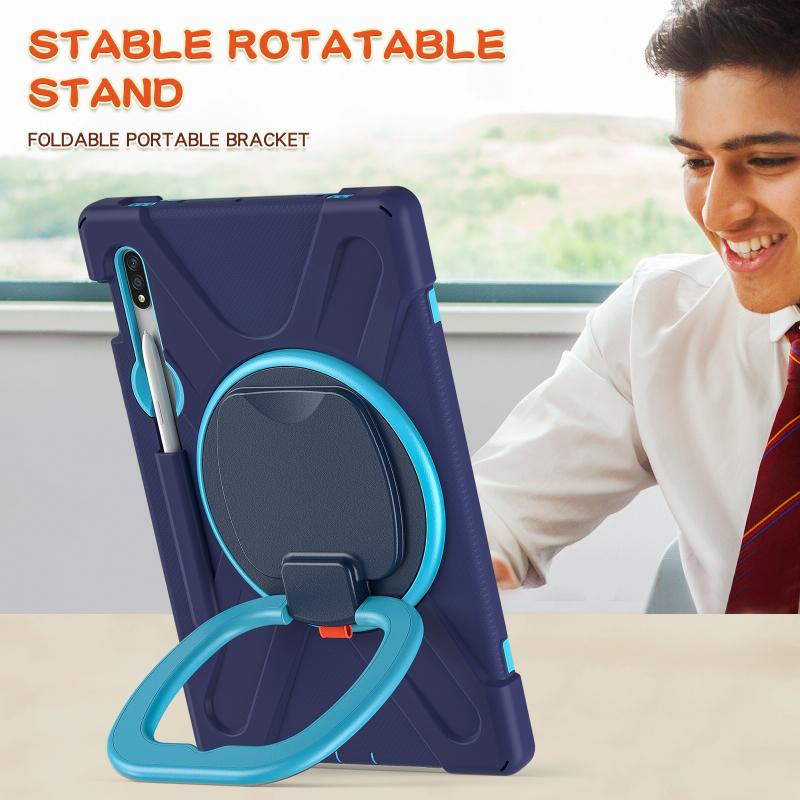 For Samsung Galaxy Tab S8 / Galaxy Tab S7 T870 / T875 Silicone + PC Protective Case with Holder & Shoulder Strap(Navy Blue + Blue)