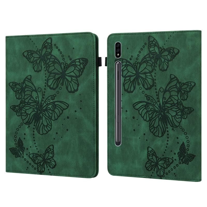 For Samsung Galaxy Tab S8 / Galaxy Tab S7 T870/T875/T876B Embossed Butterfly Pattern Horizontal Flip Leather Tablet Case(Green)