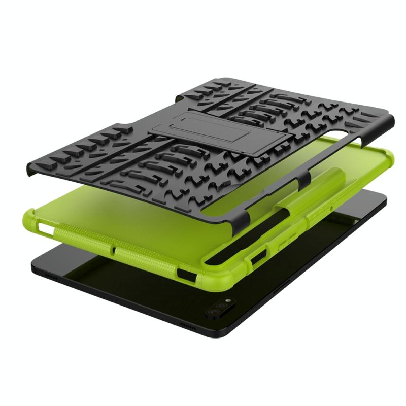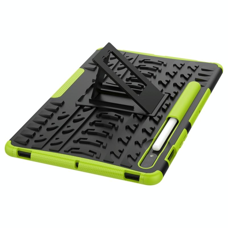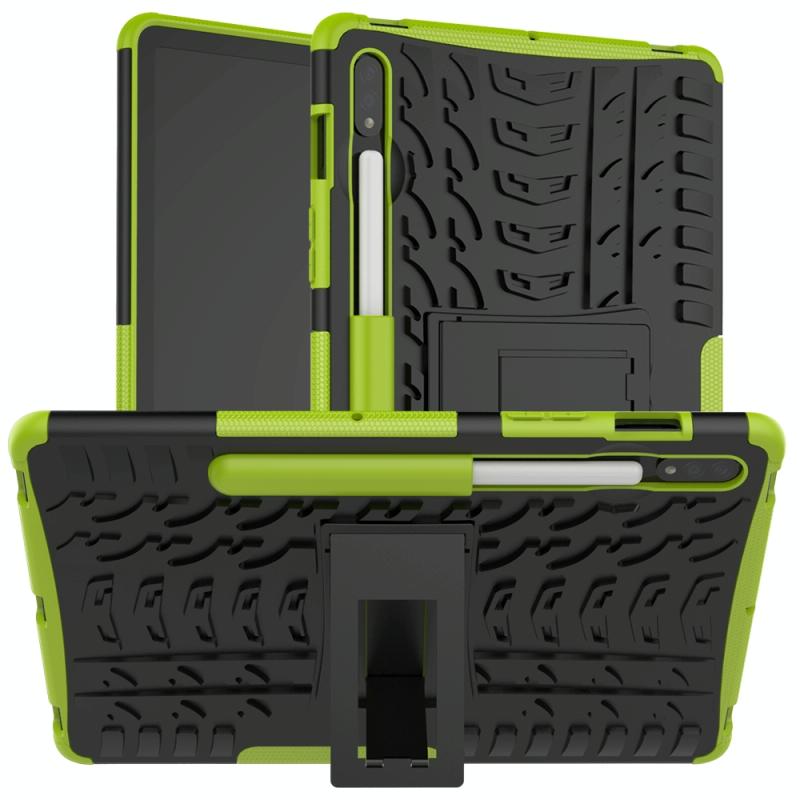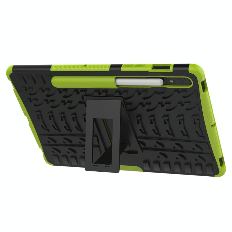 For Samsung Galaxy Tab S8 / Galaxy Tab S7 T870 / T875 Tire Texture Shockproof TPU+PC Protective Case with Holder(Green)