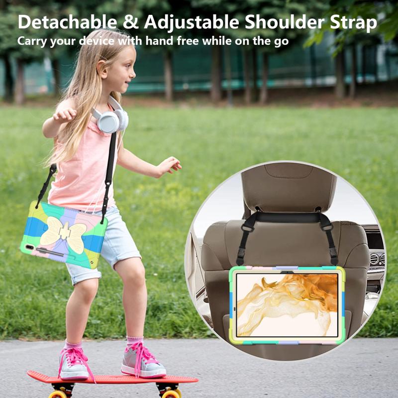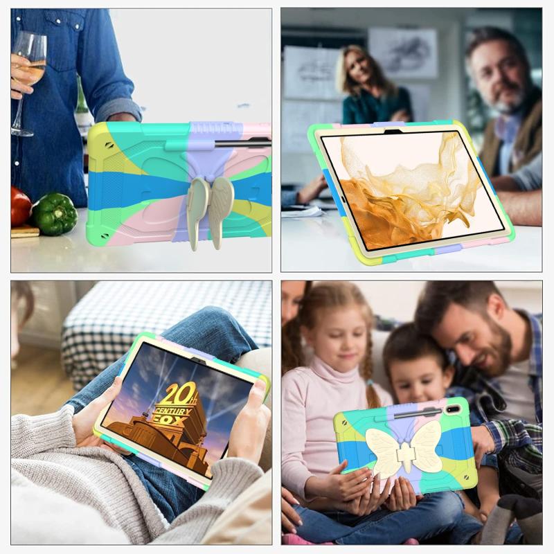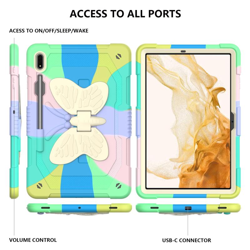 For Samsung Galaxy Tab S8+ / S7+ Butterfly Kickstand Heavy Duty Hard Rugged Tablet Case(Colorful Green)