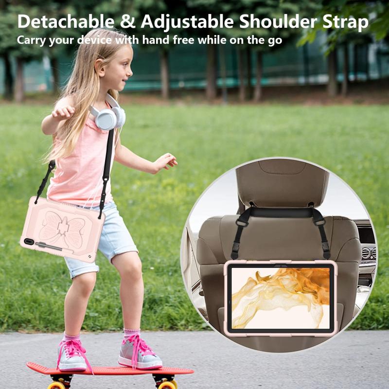 For Samsung Galaxy Tab S8+ / S7+ Butterfly Kickstand Heavy Duty Hard Rugged Tablet Case(Rose Pink)