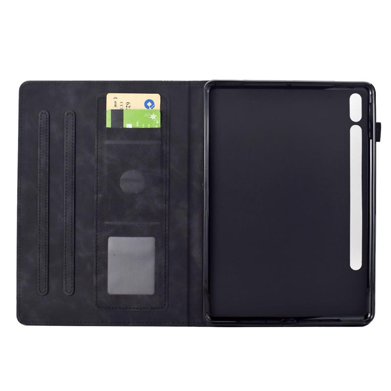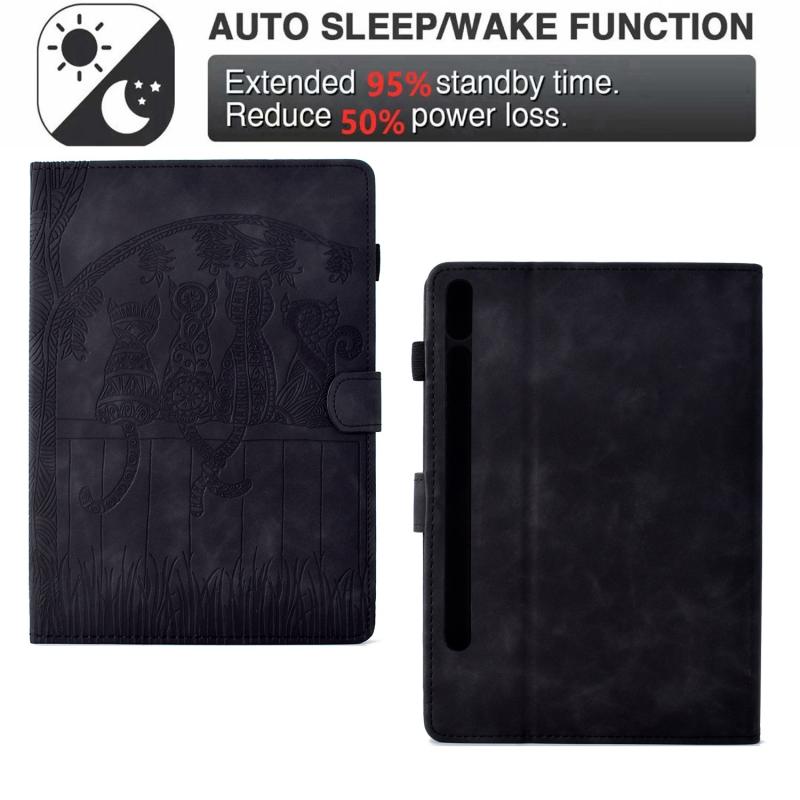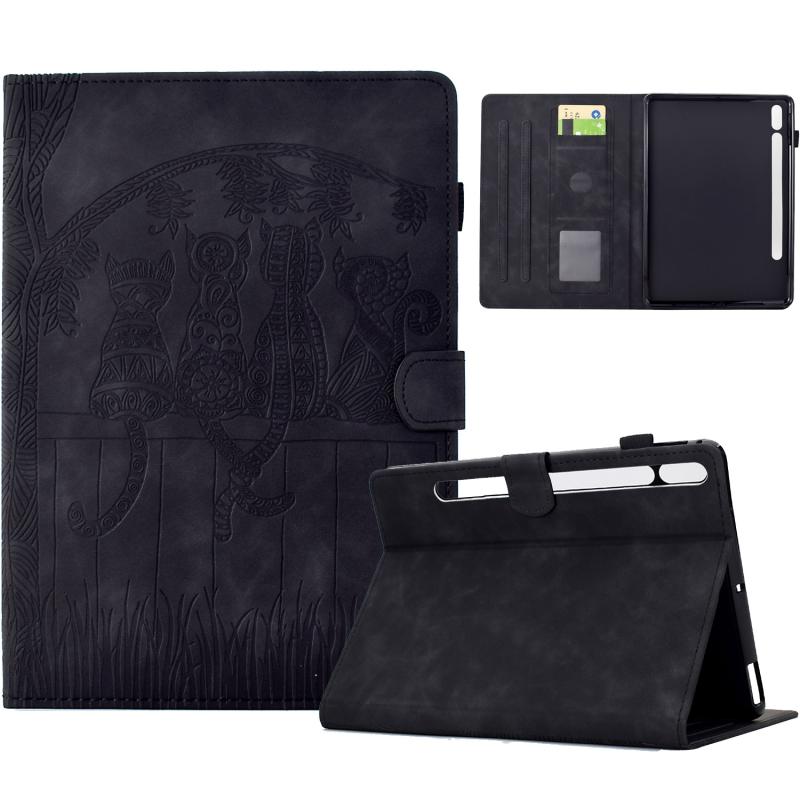 For Samsung Galaxy Tab S8 / S7 Cats Embossed Leather Smart Tablet Case(Black)