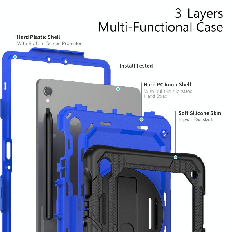 For Samsung Galaxy Tab S8 / S7 Silicone Hybrid PC Tablet Protective Case(Black+Dark Blue)