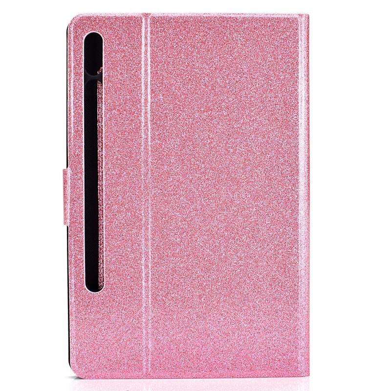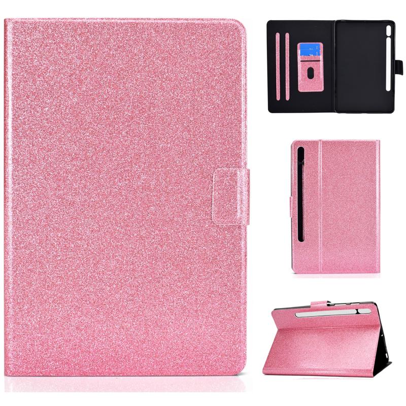 For Samsung Galaxy Tab S8 / S7 Varnish Glitter Powder Smart Leather Tablet Case(Pink)