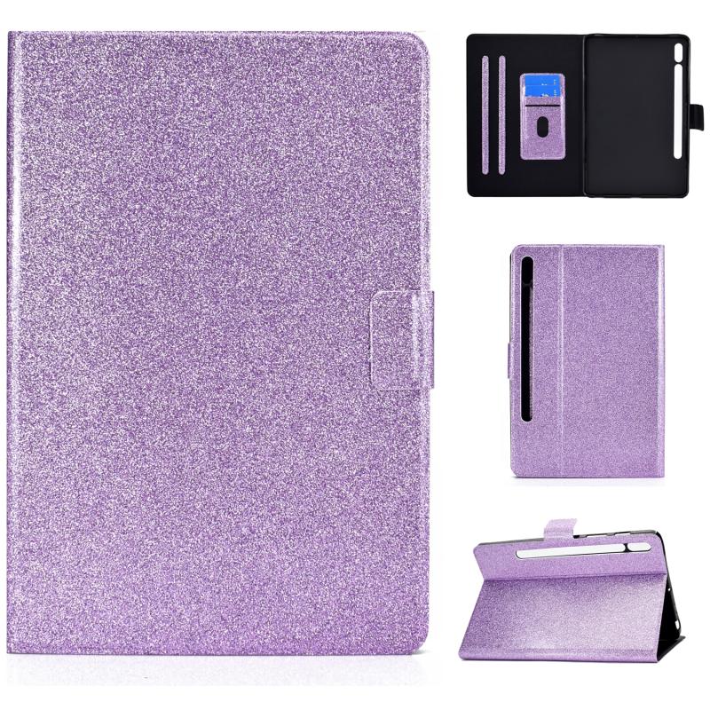 For Samsung Galaxy Tab S8 / S7 Varnish Glitter Powder Smart Leather Tablet Case(Purple)