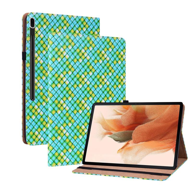 For Samsung Galaxy Tab S8+ / Tab S7+ Color Weave Texture Flip Leather Tablet Case with Holder(Green)