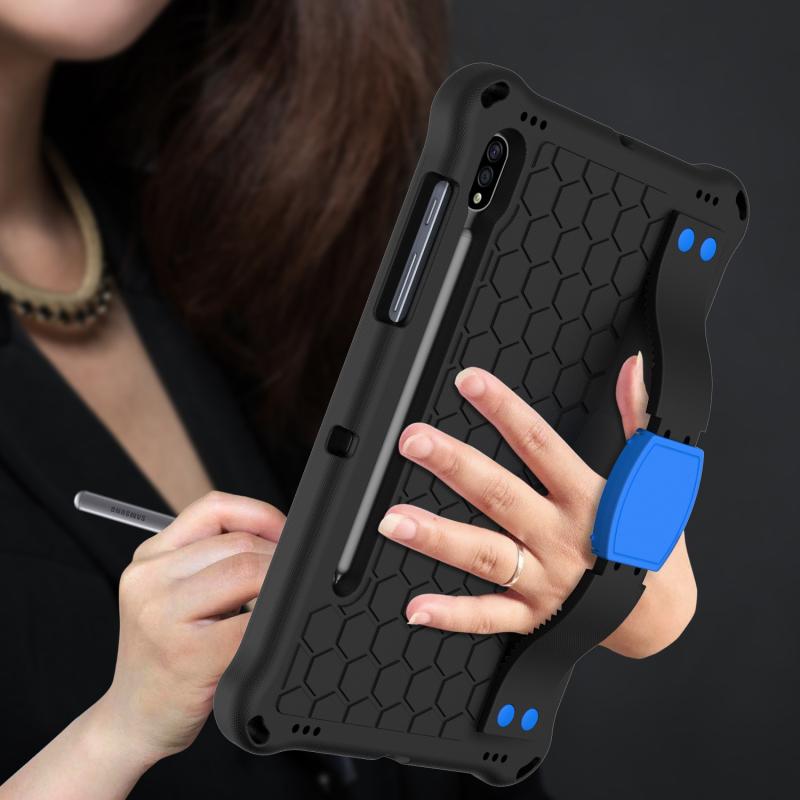For Samsung Galaxy Tab S8 / Tab S7 Honeycomb Design EVA + PC Tablet Case with Strap(Black+Blue)
