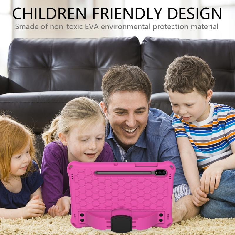 For Samsung Galaxy Tab S8 / Tab S7 Honeycomb Design EVA + PC Tablet Case with Strap(Rose Red+Black)