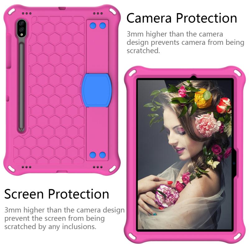 For Samsung Galaxy Tab S8 / Tab S7 Honeycomb Design EVA + PC Tablet Case with Strap(Rose Red+Blue)