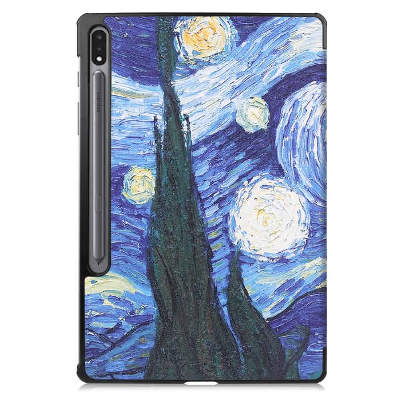 For Samsung Galaxy Tab S8+ / Tab S8 Plus / Tab S7 FE / Tab S7+ Custer Painted PU Leather Case with Sleep / Wake-up Function & 3-Fold Holder(Starry Sky)