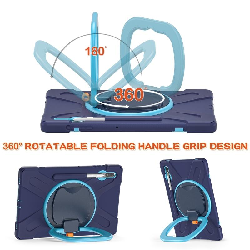 For Samsung Galaxy Tab S8+ / Tab S8 Plus / Tab S7 FE / Tab S7+ T970/T975 Silicone + PC Protective Case with Holder & Shoulder Strap(NavyBlue+Blue)