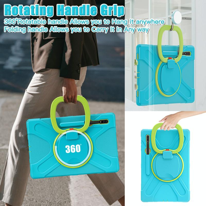 For Samsung Galaxy Tab S8 Ultra X900 Silicone + PC Tablet Protective Case(Light Blue+Yellow Green)